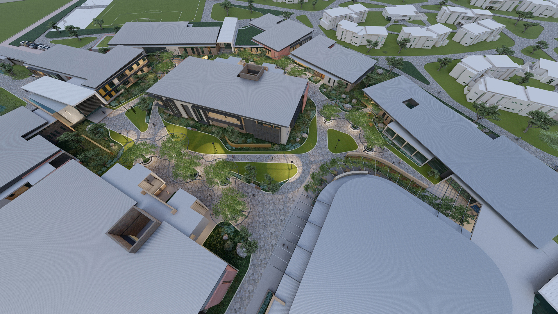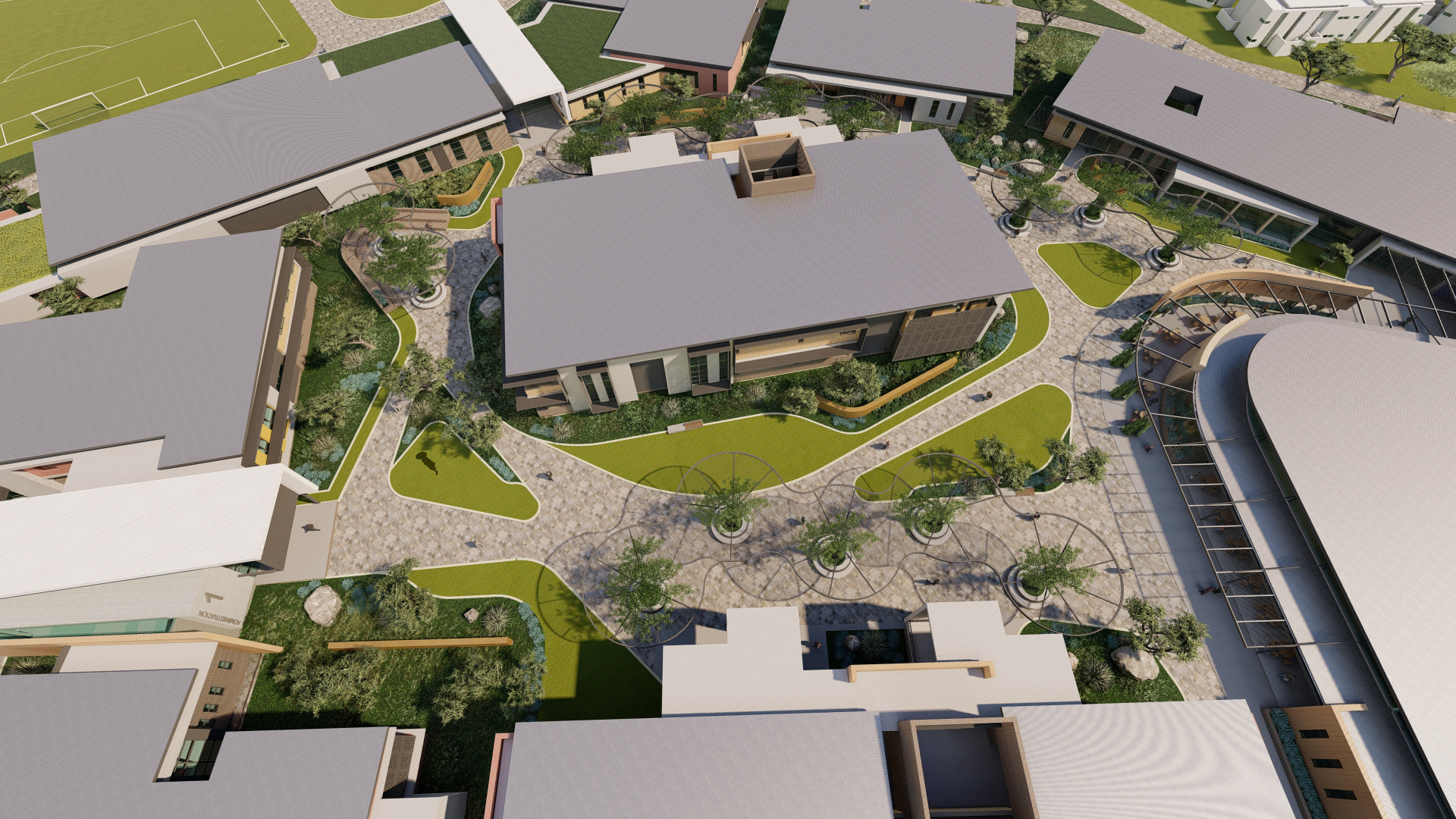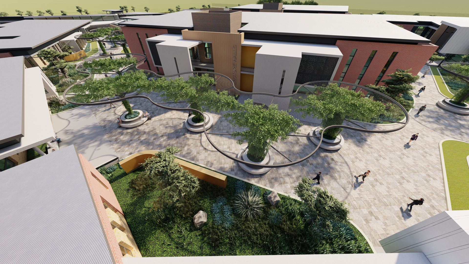 The college design embodies simplicity, purity, and modernity, harmonizing with existing architecture. It prioritizes human scale, enhancing comfort for students and staff. This approach fosters a safe, tranquil environment conducive to teaching and learning.